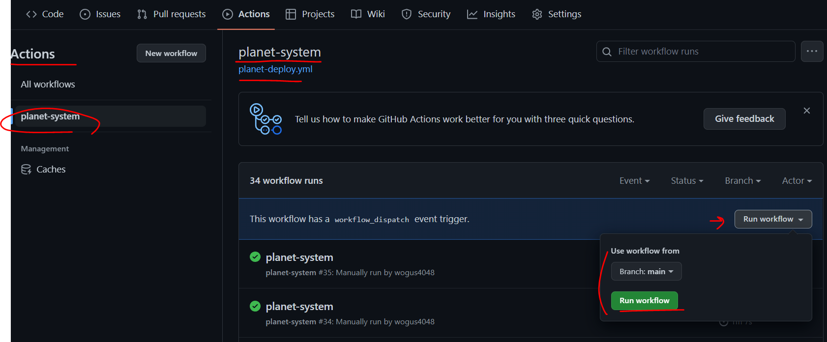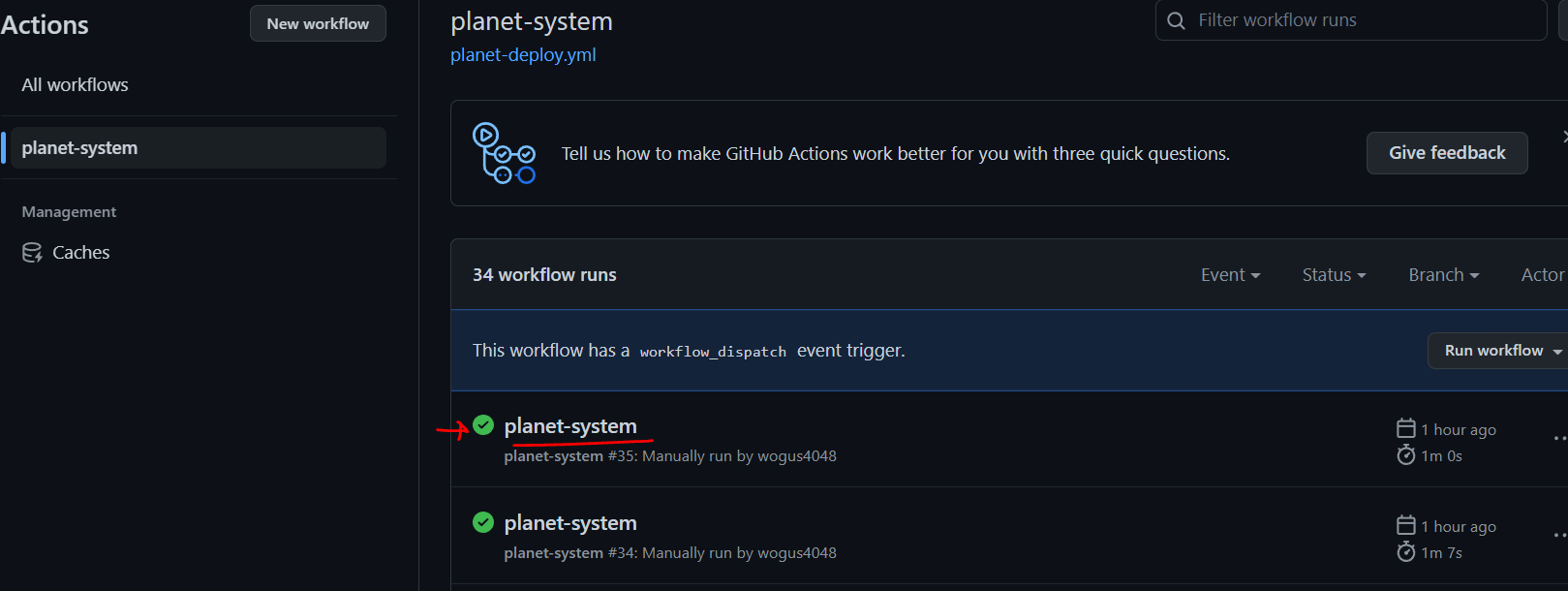 방금 workflow_dispatch 로 workflow 를 수동 실행하겠다고 스크립트를 작성했기 때문에,