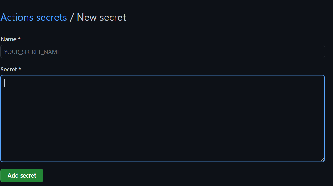 저장소 안에 비밀값들을 저장하는곳에 저장해보자.