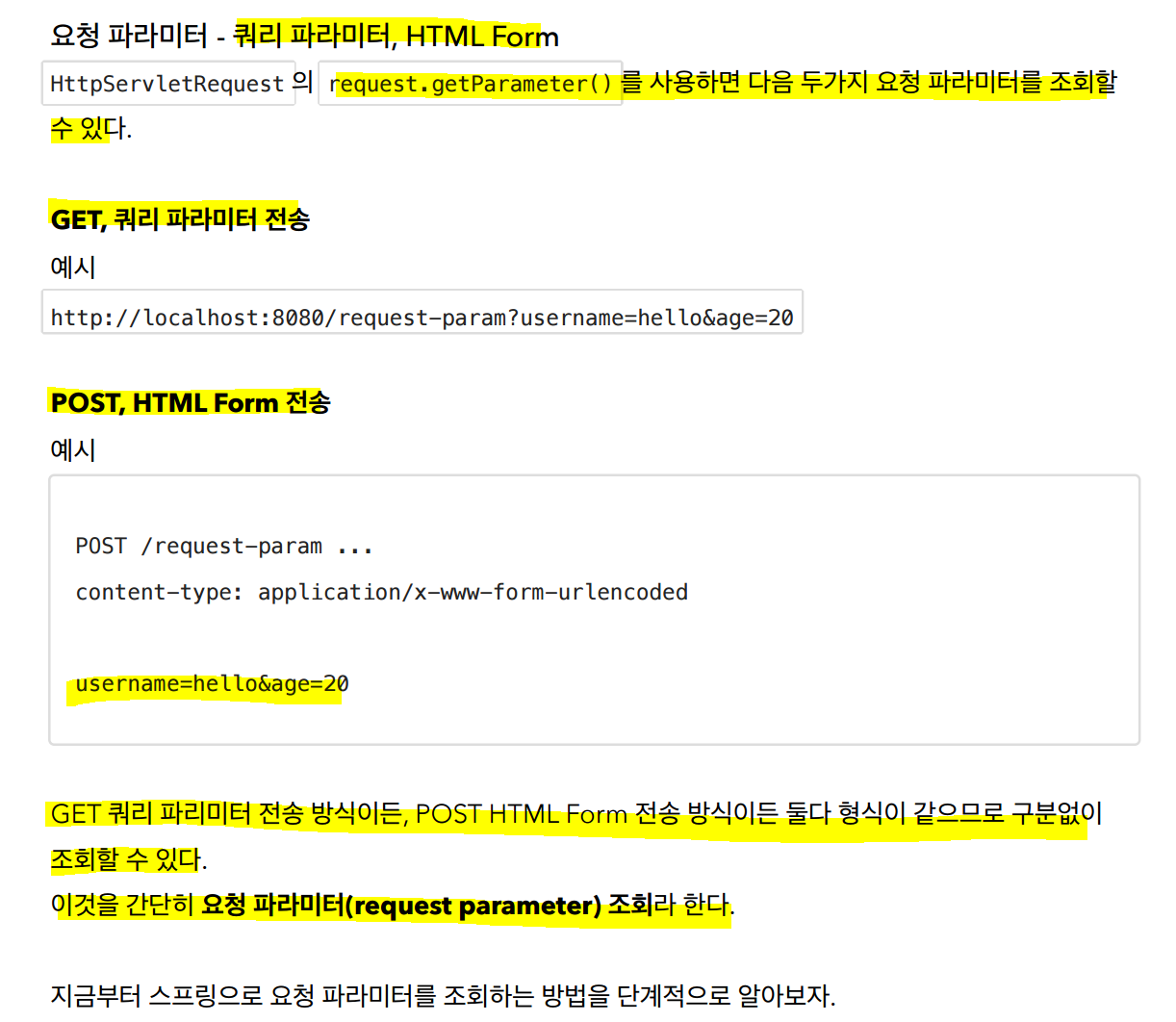 어차피 둘다 형식이 파라미터형식이므로 HttpServletRequest의 getParameter()로 파라미터를 조회할 수 있었다.
