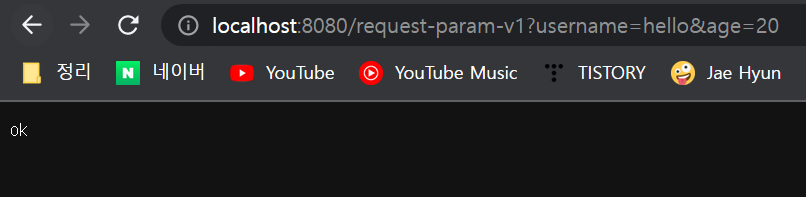 public String requestParamV4(String username, int age) {//파라미터명과 변수명이 같을때, 파라미터명과 @RequestParam어노테이션까지 생략가능하다.