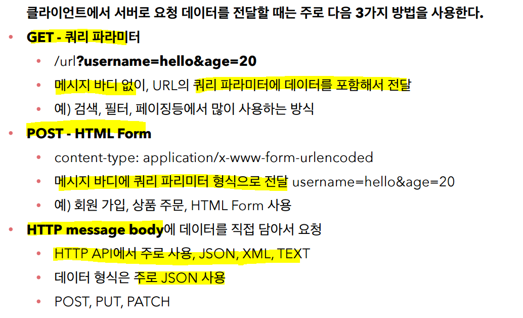 클라이언트에서 서버로 요청데이터를 보내는 방법은 단 3가지 뿐이다.