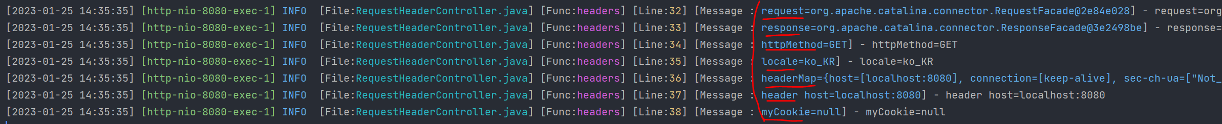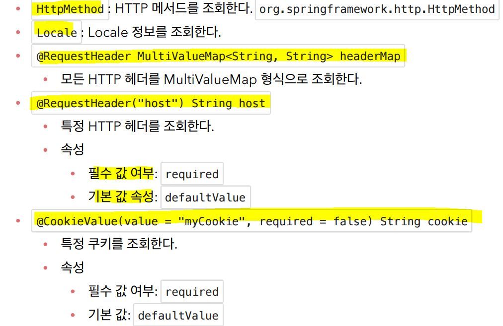 @RequestHeader("host")String host, //헤더를 하나만 받고싶을때 @ReqeustHeader("받고싶은헤더이름")으로 헤더를 받아올 수 있다.