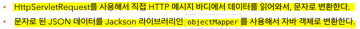 요청 메시지의 바디안에 JSON이 담겨왔을때 처리 방법