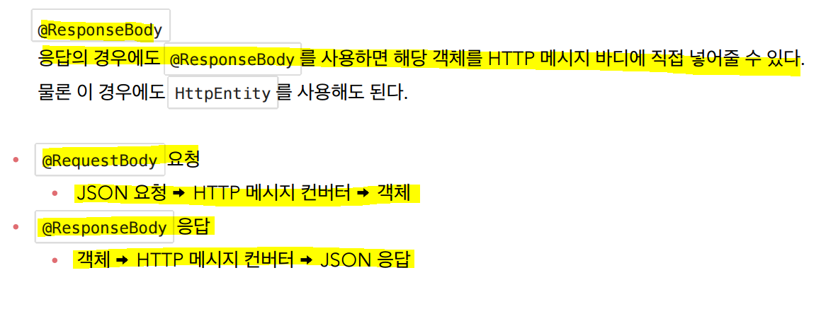 @ResponseBody가 있는데 객체를 반환할때 http메시지컨버터가 객체를 JSON으로 변환해주고 http응답메시지에 넣는다.