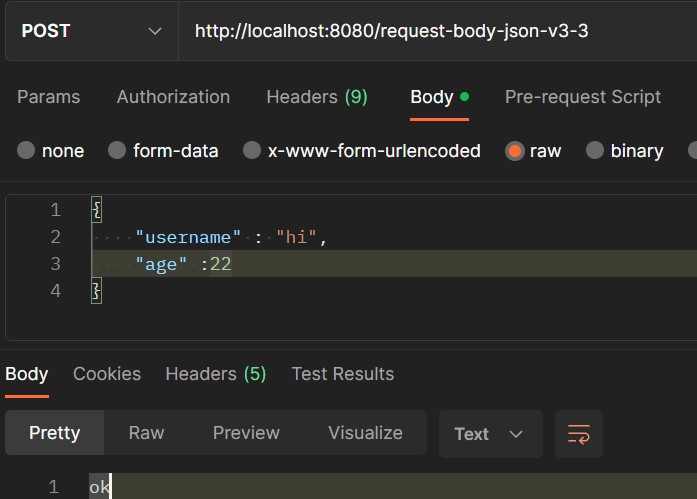 @RequestBody를 사용해서 Http메시지바디에 들어온값의 타입이 text이든 Json이든