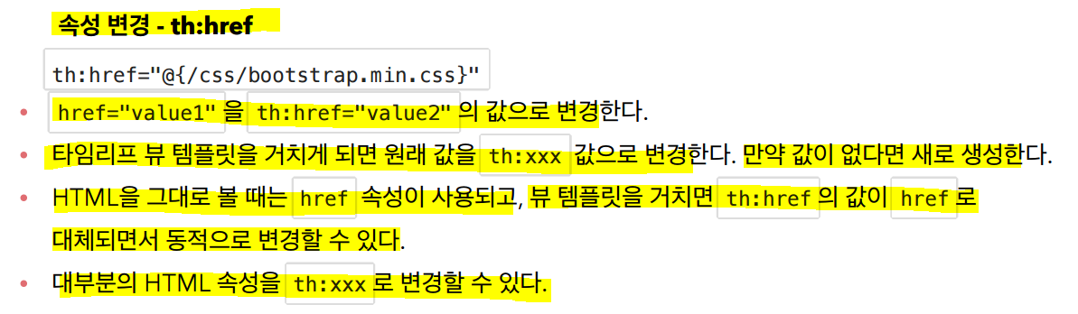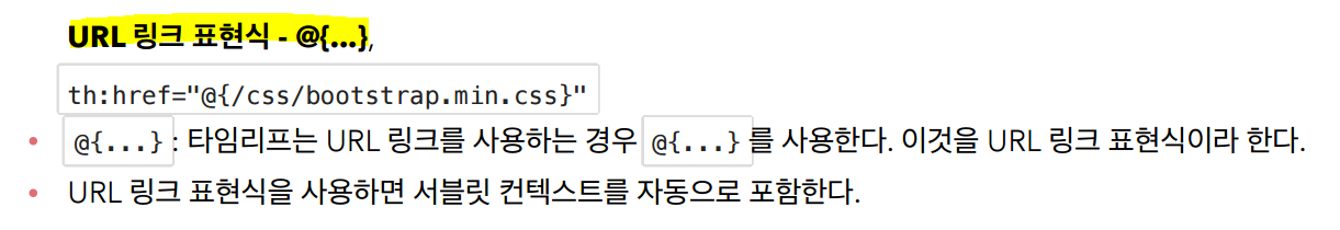 타임리프로 url링크넣는 부분을 수정해보자. url링크를 넣는부분은 @{}가 들어가야하고