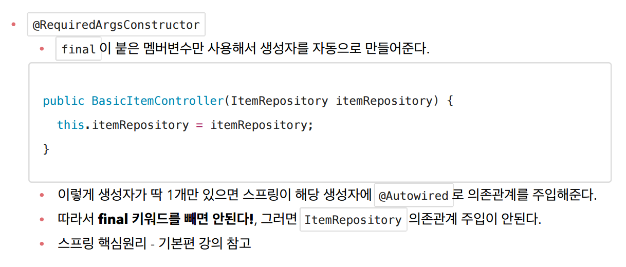 private final ItemRepository itemRepository; //스프링컨테이너있는 아이템리포지토리 스프링빈을 주입받는다.