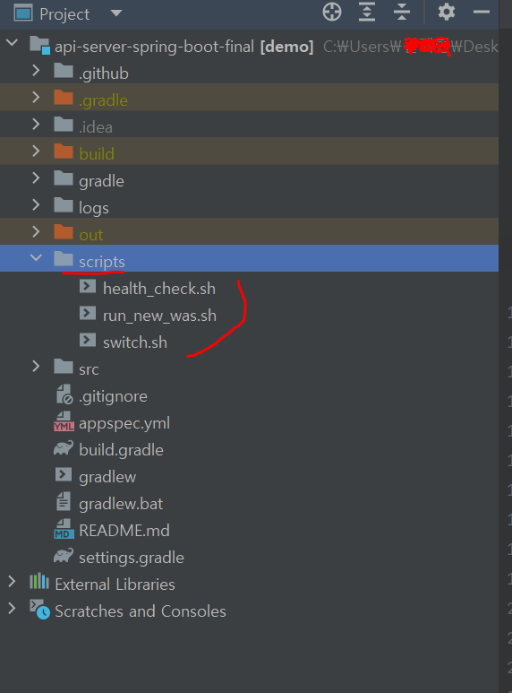 프로젝트 최상단에 scripts라는 디렉토리를 만들고 그곳에 저장할것이다!