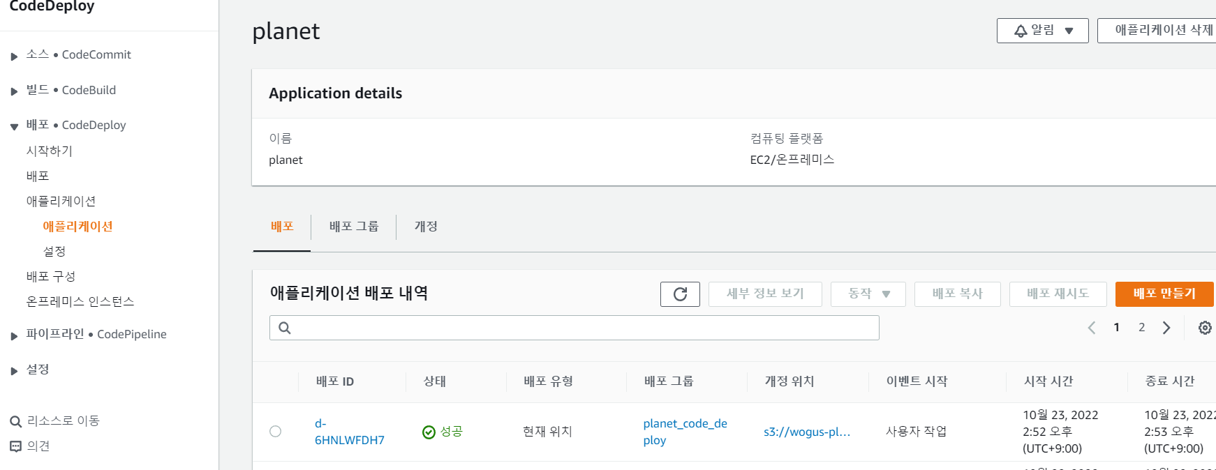 그리고 code deploy 배포가보면 배포도 성공한걸 확인할 수 있음!