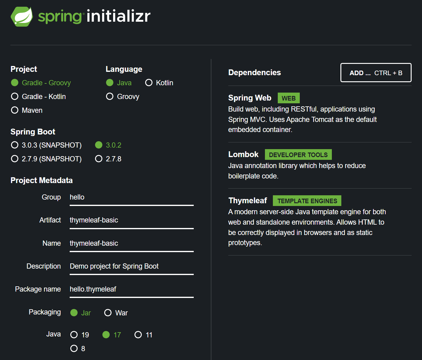 implementation 'org.springframework.boot:spring-boot-starter-thymeleaf'