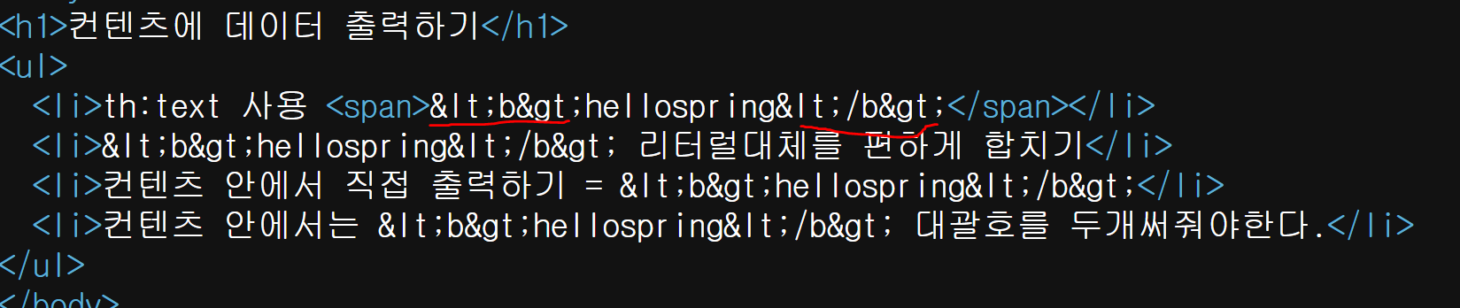 <li>컨텐츠 안에서는 [[${data}]] 대괄호를 두개써줘야한다.</li>