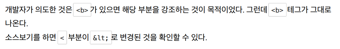 그렇다면 태그가 이스케이프 처리되지않고 그대로 보이려면 어떻게해야할까?