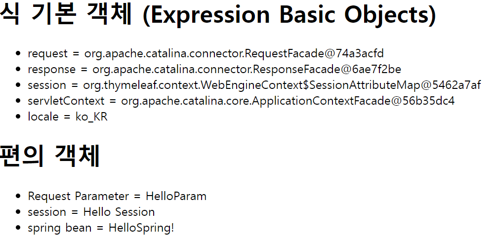 local은 ${#locale}로 출력된것이다. 따로 모델에 넣은값이 아니고 기본으로 제공되는 객체는 #을 이용해서 가져온다.