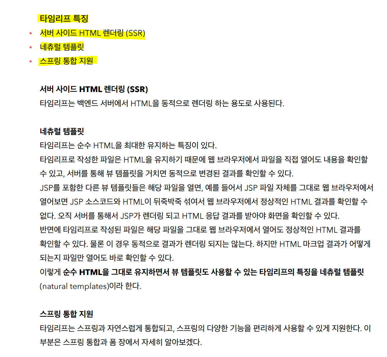 <li>th:text 사용 <span th:text="${data}">뷰가 렌더링되면 여기에있는 내용이 대체된다.</span></li>