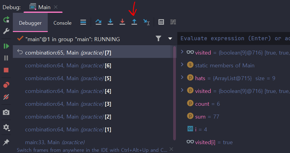 또는 과정을 살펴보는걸 그만두고 다음 브레이크포인트로 이동할때 사용하면 편할듯하다.