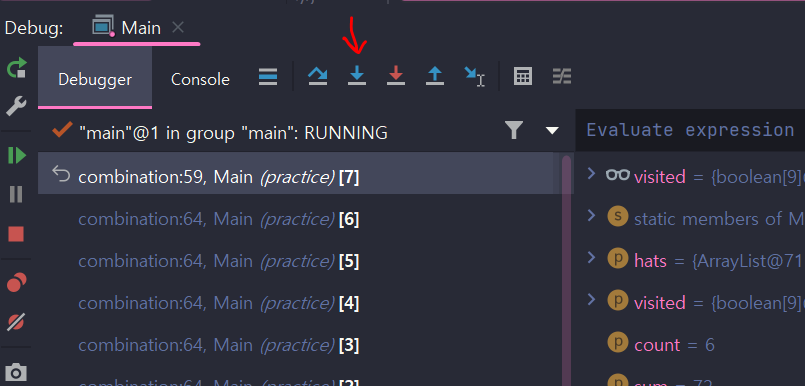 step into 버튼으로 한줄씩 지나가면서 , 그 줄에서 실행되는 메소드내부로 들어가 실행과정을 살펴보게끔한다.