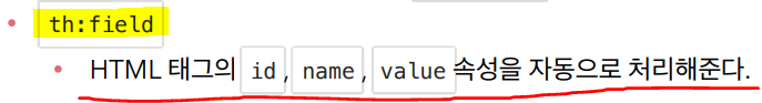 input안의 id,name 속성이 있고 값은 동일하다. 그걸 th:field를 이용하여 한번에 처리가 가능하다.