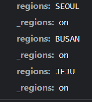 (regions -> 리스트 , region -> Map 으로 넣은 데이터들을 하나씩 받아 region에다가 저장했다.)