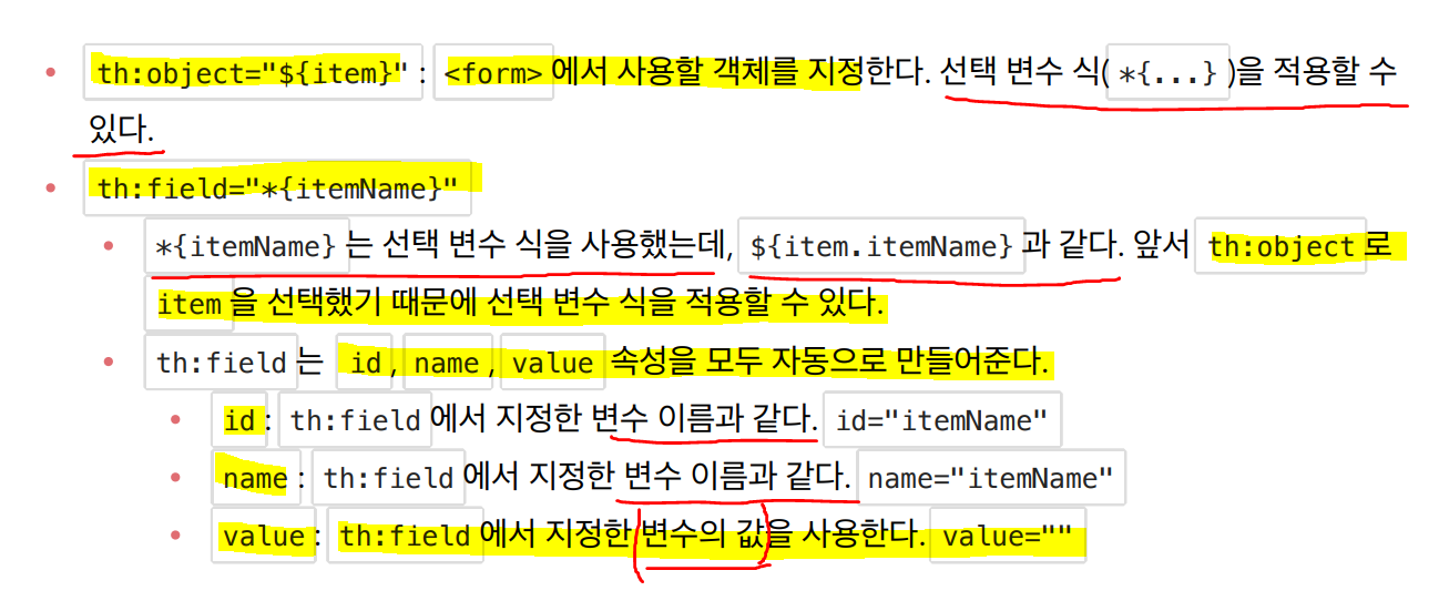 지금부터 타임리프가 제공하는 입력 폼 기능을 적용해서