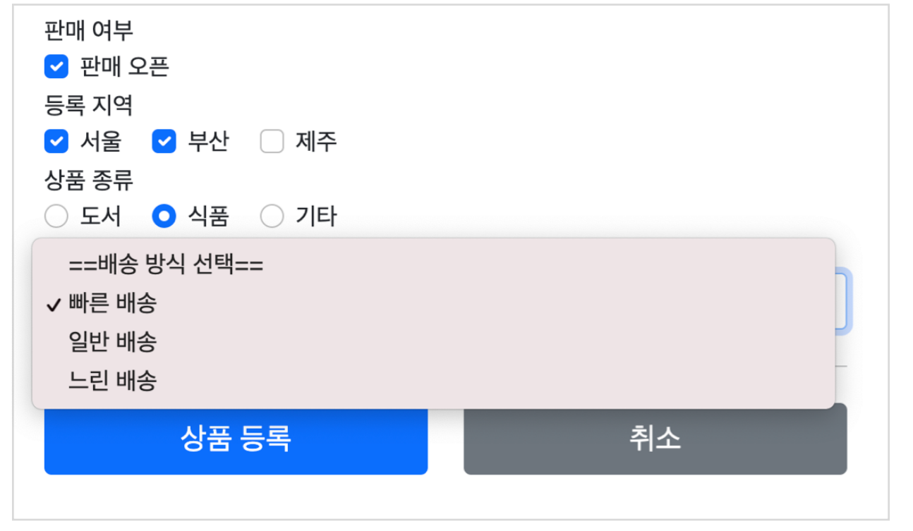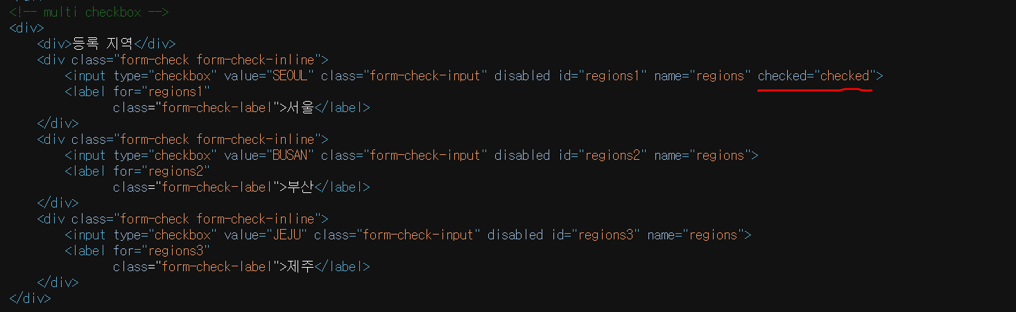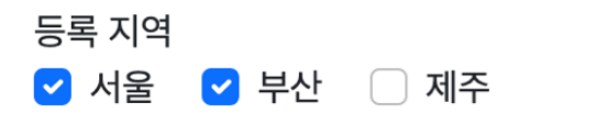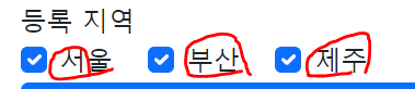 서울,제주 체크박스를 만들때는 checked 속성을 추가해서 선택되어있게 만든다.