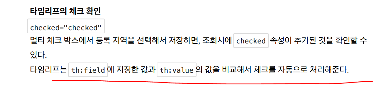 th:value로 들어오는 값과 비교해서 체크를 자동 처리해준다.