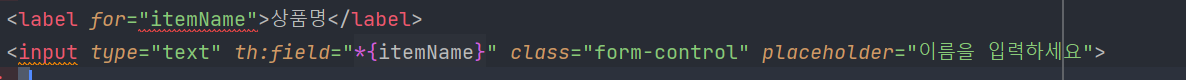 <input type="text" th:field="${item.itemName}" class="form-control" placeholder="이름을 입력하세요">