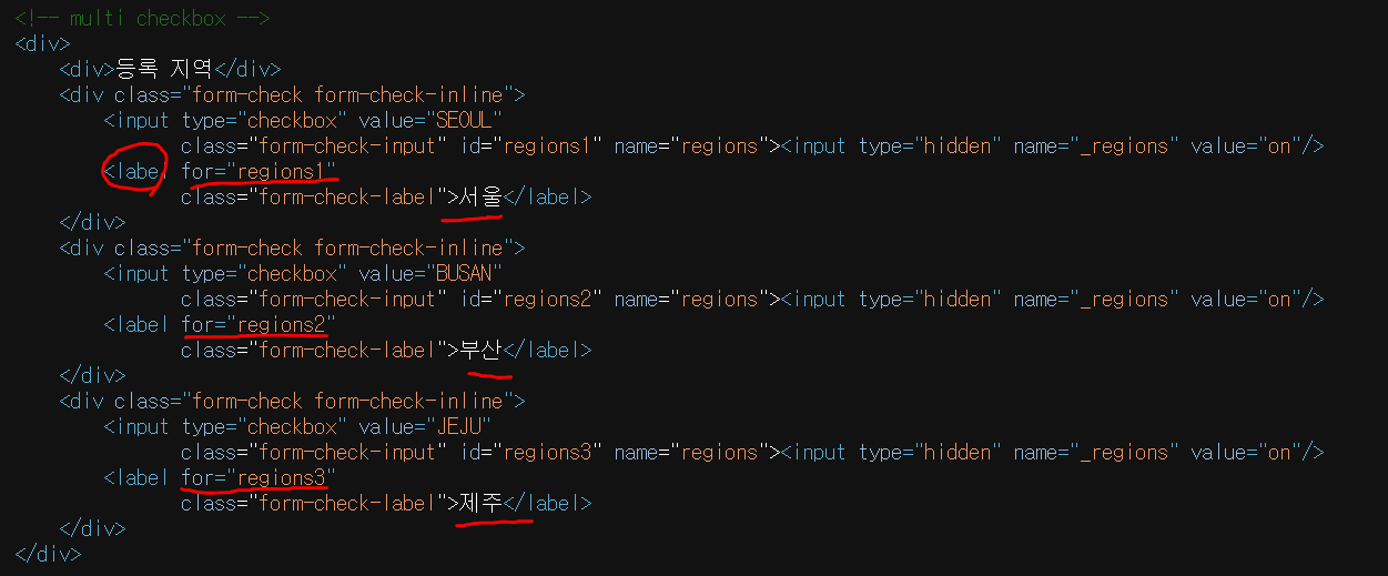 즉 라벨은 앞에 있는 체크박스의 id를 알아야한다 th:for="체크박스의 id" 이런식으로 구성이 되어야함.
