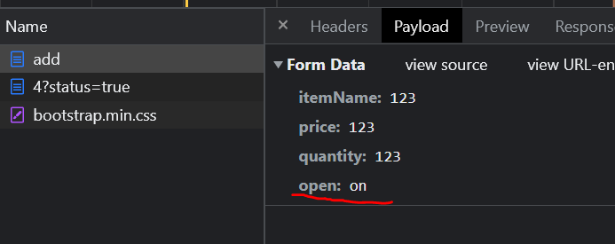 value는 비어있음. (지금 커맨드객체의 itemName 변수가 빈값이라서!)