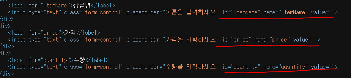 <input type="text" id="itemName" name="itemName" class="form-control" placeholder="이름을 입력하세요">