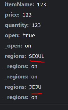그리고 th:field는 커맨드객체인 Item의 regions이다.