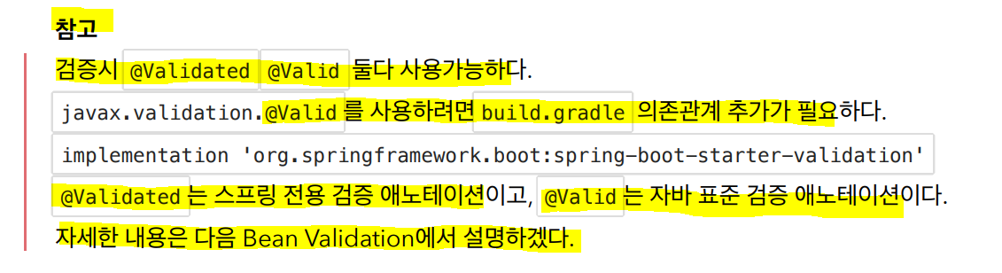 @Validated @Valid 둘다 같은 애노테이션입니다.