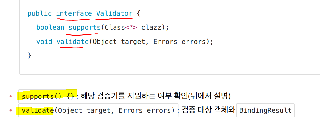 그런데 Validator 인터페이스를 사용해서 검증기를 만들면 스프링의 추가적인 도움을 받을 수 있다.