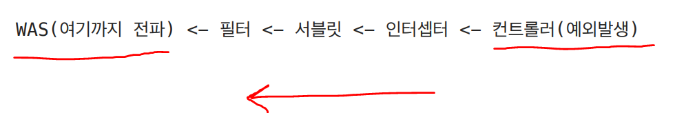 예외가 발생시 ( 진행과정중 3번인 핸들러(컨트롤러)에서 예외가 발생한 상황)