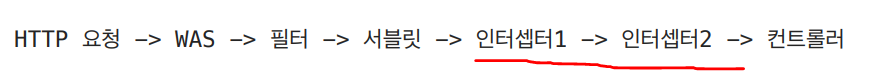 스프링 인터셉터는 스프링 MVC가 제공하는 기능이기 때문에 결국 디스패처 서블릿 이후에 등장하게 된다.