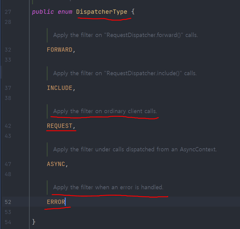 필터는 DisPatcherType을 체크하면되고,