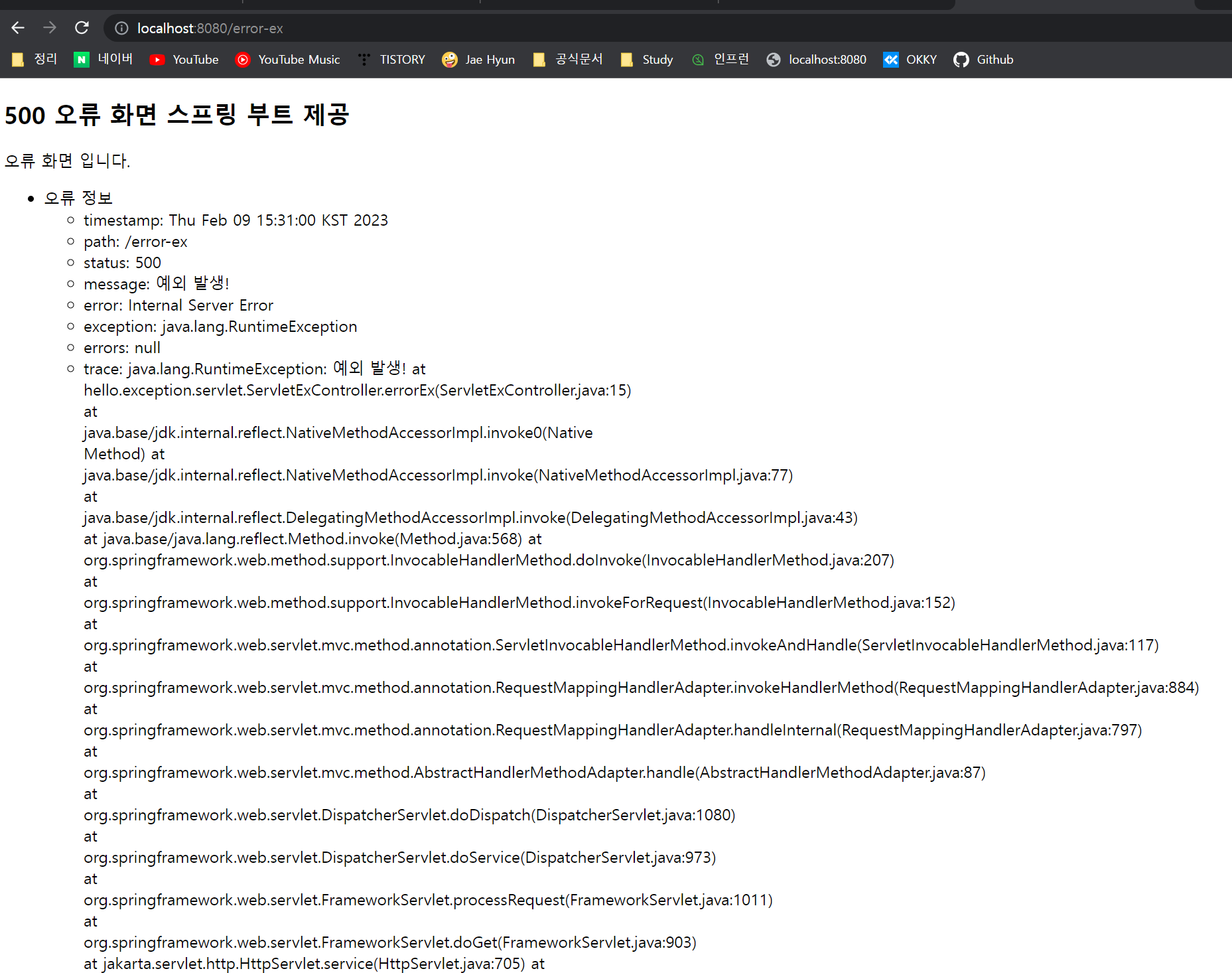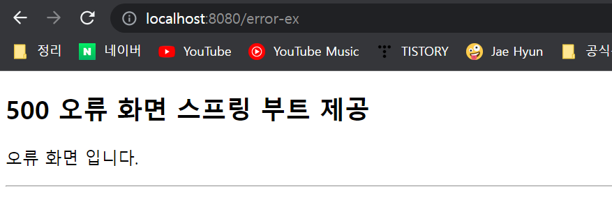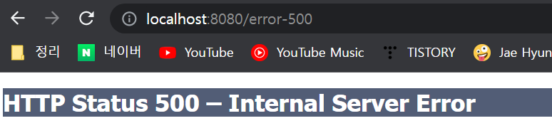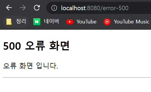 여기서는 예외가 발생한 경우도 500 오류 화면으로 처리했다.