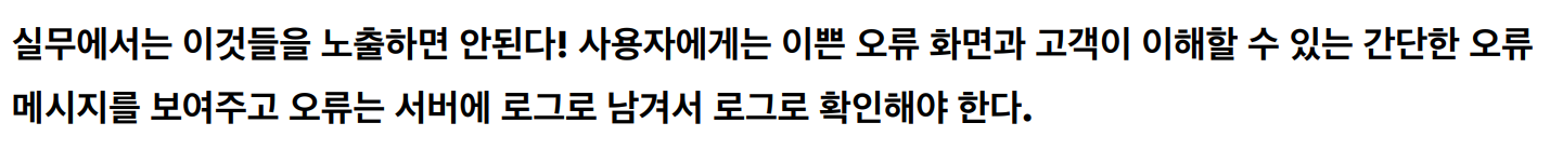 오류 관련 내부 정보들을 고객에게 노출하는 것은 좋지 않기 때문이다.