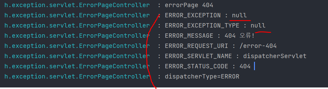 exception이라던지 메시지라던지 일부정보가 null로 되어있다 왜일까?