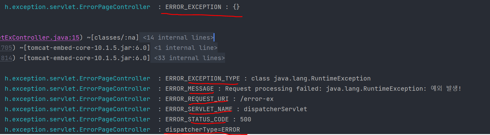 ErrorPage errorPageEX = new ErrorPage(RuntimeException.class, "/error-page/500"); //RuntimeException가 발생했을경우에도 설정가능
