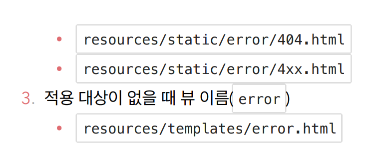 스프링부트가 제공하는 기능을 이용해서 오류페이지를 구성할때