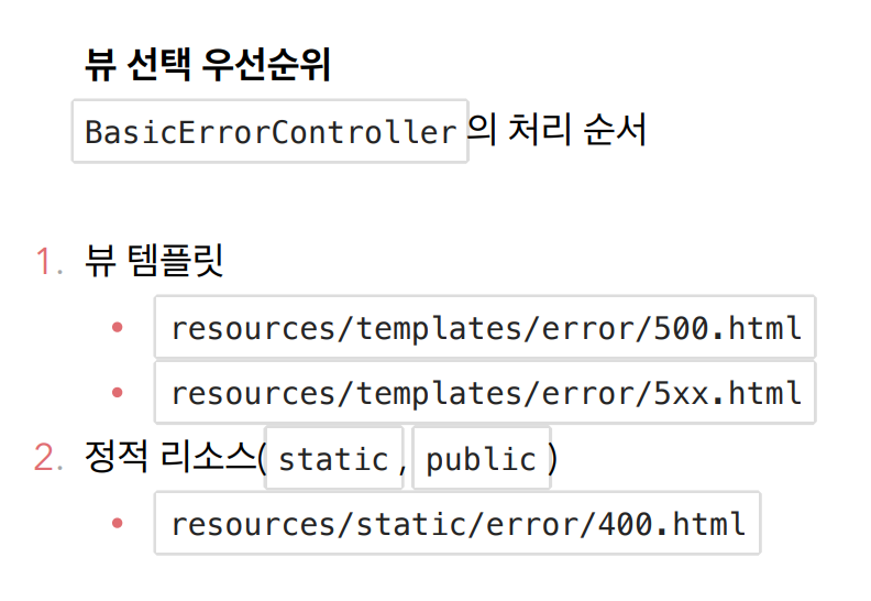 그러면 뷰의 내용이 동적으로 수정되게 BasicErrorController의 핸들러메소드의 수정이 좀 필요할거같다.)