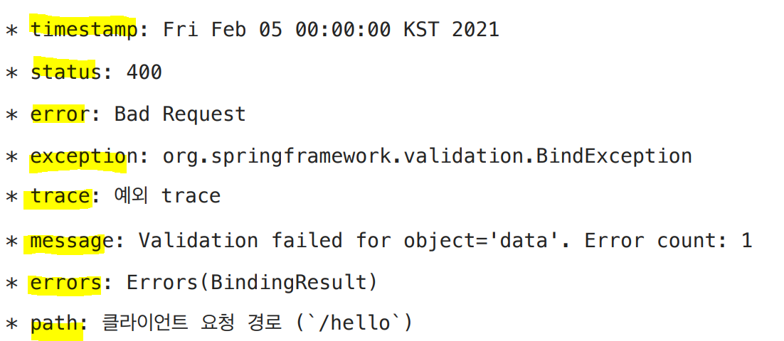 BasicErrorController가 제공하는 기본 정보들