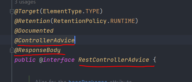 @ControllerAdvice 와 같고, @ResponseBody 가 추가되어 있다. @Controller , @RestController 의 차이와 같다.