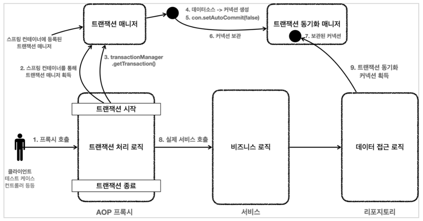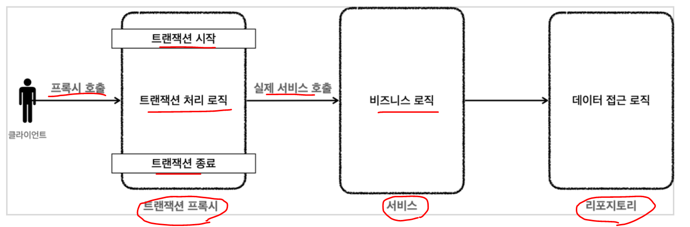 트랜잭션 AOP가 사용된 전체 흐름을 그림으로 정리해보자