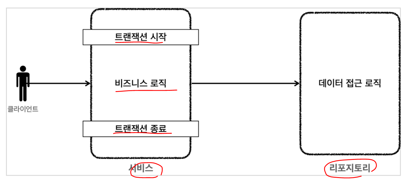 @Transactional 애노테이션의 자세한 사용법은 뒤에서 설명한다. 지금은 전체 구조를 이해하는데 초점을 맞추자