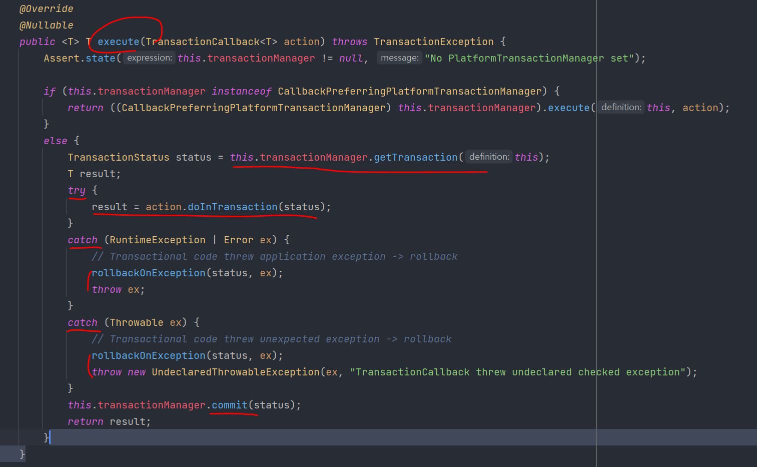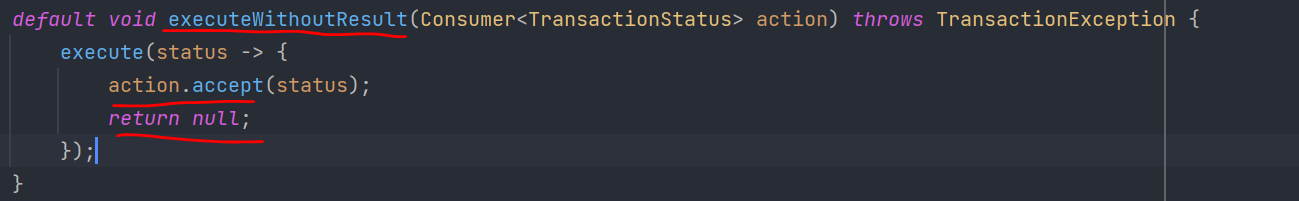 void executeWithoutResult(Consumer<TransactionStatus> action){..}