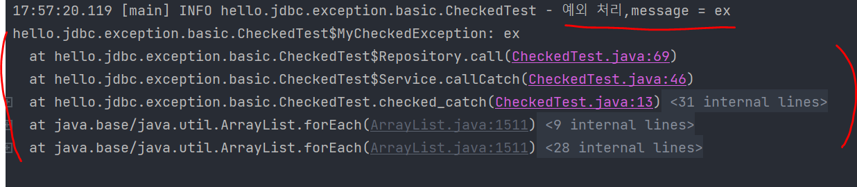 repository.call(); // Repository의 call() 메소드는 MyCheckedException이라는 예외를 던지도록 선언되어있다.