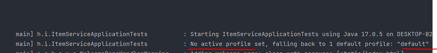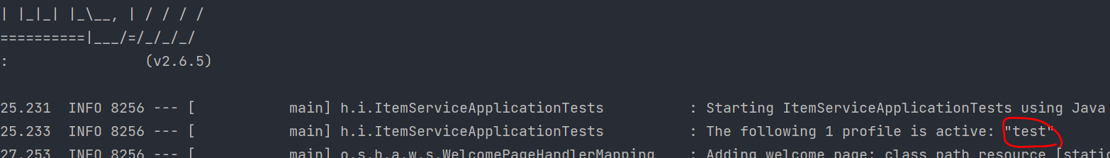 프로필 기능 덕분에 테스트 케이스에서는 test 프로필이 실행된다.