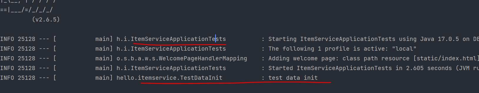 ItemServiceApplicationTests내부 코드에는 TestDataInit을 빈으로 추가하는 코드가 없으므로 테스트의 프로필을 local로 해도 상관없지않을까 했지만 ItemServiceApplicationTests실행시 main쪽에 있는 ItemServiceApplication가 실행된다.