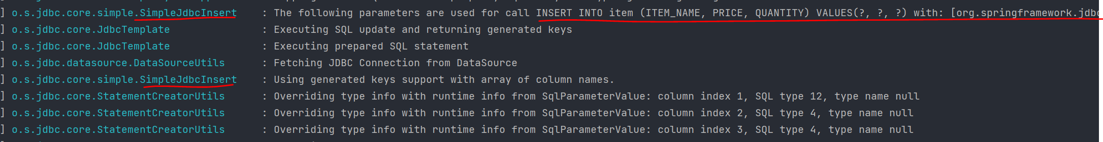 여기서는 itemName , price , quantity 가 SQL에 있는 ? 에 순서대로 바인딩 된다.
